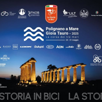 La Storia in Bici è la Pedalata cicloturistica e culturale “POLIGNANO A MARE – GIOIA TAURO denominata "LA CORSA DEI TRE MARI”, una corsa che si è svolta solo quattro volte nella storia: nel 1918, 1919, 1938 e 1949. Una breve corsa a tappe organizzata dal giornale Il Mattino di Napoli che suscitò un certo entusiasmo all’epoca e portò al successo degli interessanti corridori. Si svolgeva tutta nelle Regioni del Sud Italia e lambendo le coste di Adriatico, Ionio e Tirreno prese il nome di “Giro dei tre Mari”. La concorrenza del Giro d’Italia (nato una manciata di anni prima e poi interrotto dalla Grande Guerra) e l’evoluzione del calendario internazionale del ciclismo con l’affermazione del Tour de France ne impedirono il prosieguo e l’affermazione definitiva.
