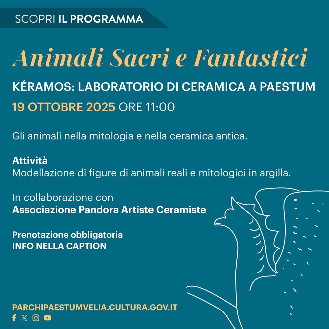 Il laboratorio di questo mese, intitolato “Animali Sacri e Fantastici”, invita grandi e piccoli a esplorare il ruolo degli animali nella mitologia e nella ceramica antica. I partecipanti avranno l’opportunità di modellare in argilla figure di animali reali e mitologici, lasciandosi ispirare dai simboli e dalle storie che da secoli popolano l’immaginario dell’antichità.