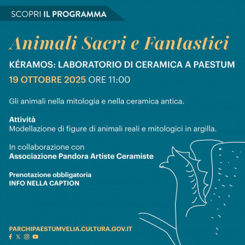 Prenotazione obbligatoria compilando il form al seguente link: https://parchipaestumvelia.cultura.gov.it/animali-sacri-e-fantastici/