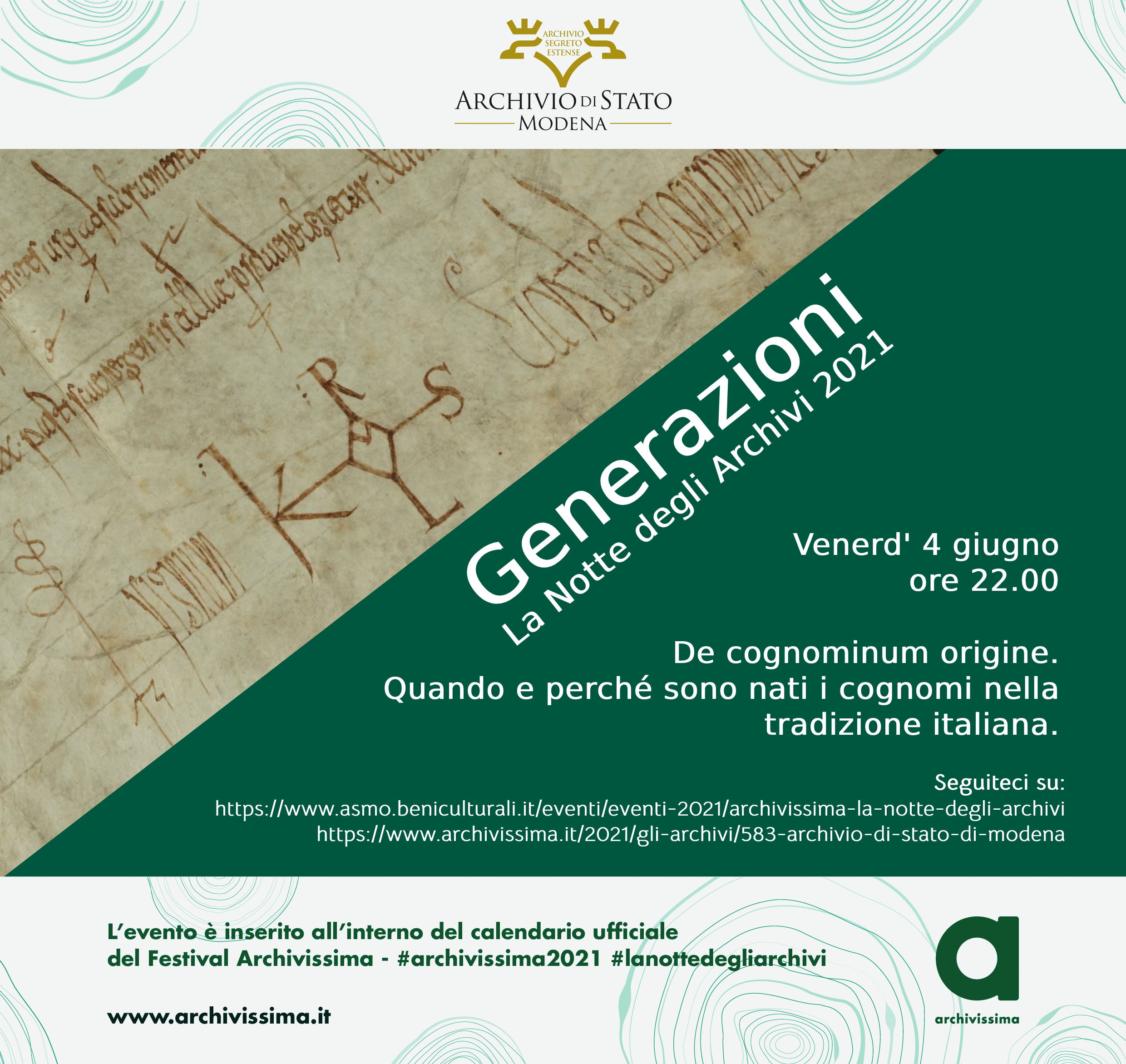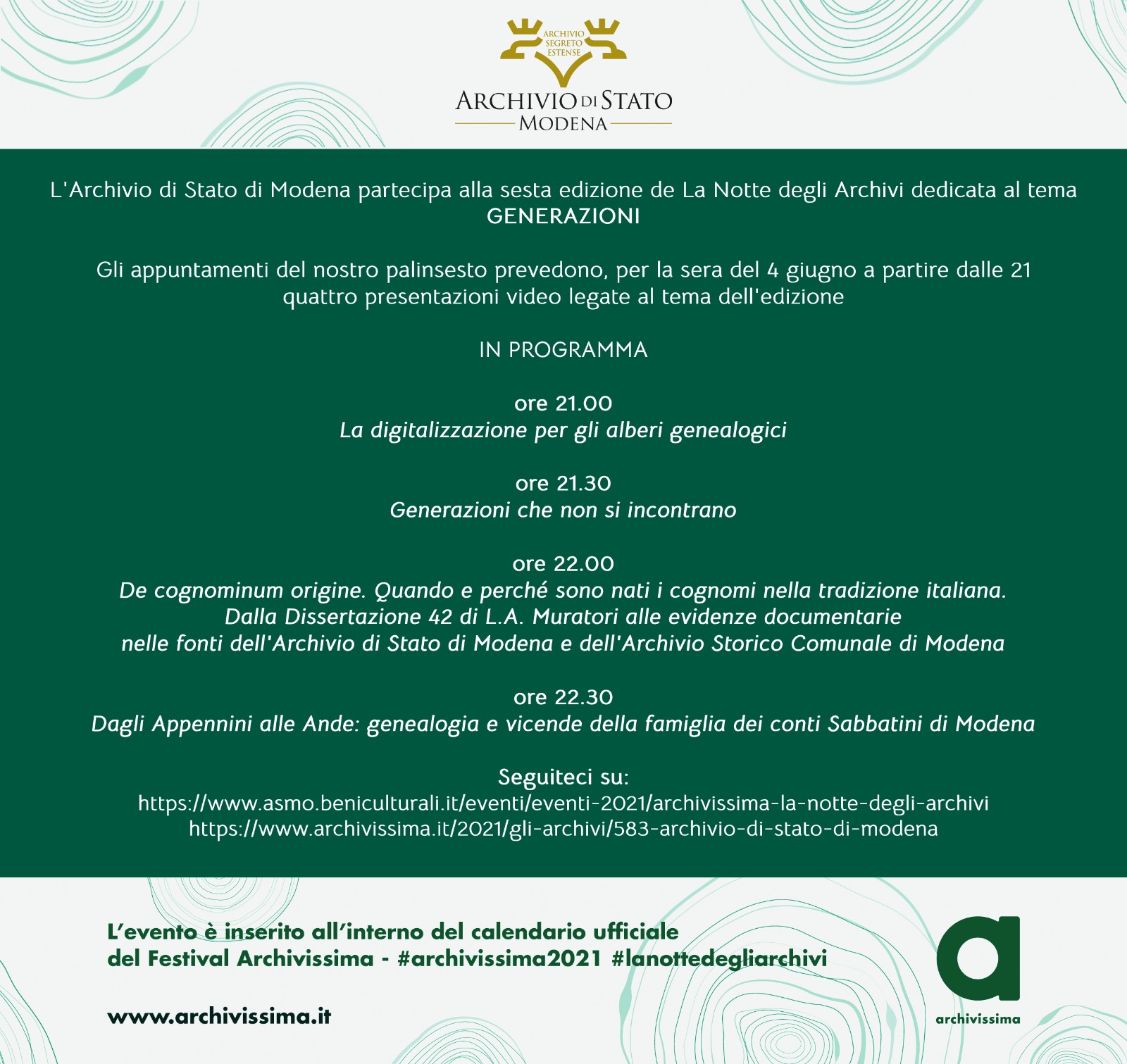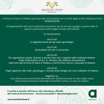 - https://www.asmo.beniculturali.it/eventi/eventi-2021/archivissima-la-notte-degli-archivi