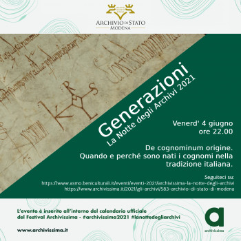 L'Archivio di Stato di Modena partecipa alla sesta edizione de La Notte degli Archivi dedicata al tema Generazioni.