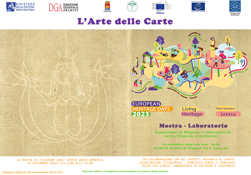 Anche quest’anno l’Archivio di Stato di Trapani aderisce alle GEP, Giornate Europee del Patrimonio. Il tema italiano dell’edizione 2023: “Patrimonio InVita”, riprende lo slogan europeo “Living Heritage”, scelto dal Consiglio d’Europa e invita a realizzare incontri nell’ottica dell’inclusività, basati su saperi, pratiche e tecniche trasmessi dal passato attraverso il patrimonio culturale, la cui conoscenza può rappresentare un mezzo per “modellare il futuro” in una prospettiva di sostenibilità.