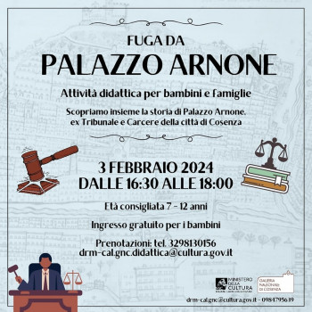 Prenotazioni al 329 8130156, su drm-cal.gnc.didattica@cultura.gov.it o sui social della Galleria nazionale di Cosenza