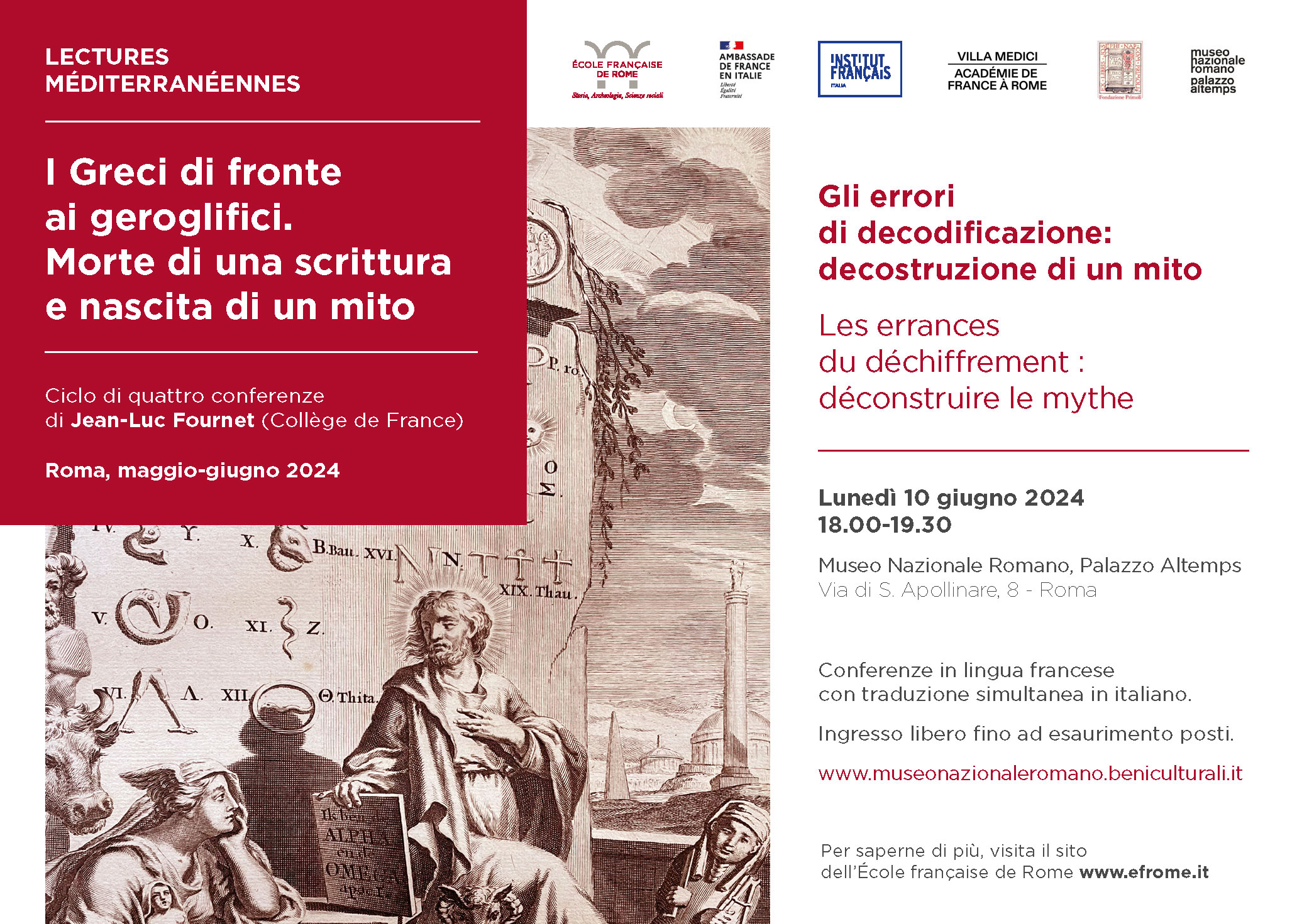 français Italia, l'Accademia di Francia a Roma - Villa Medici, la Fondazione Primoli e il Museo Nazionale Romano. Ad Altemps la conferenza ha il titolo “Gli errori decodificazione: decostruzione di un mito”. Le conferenze sono in lingua
