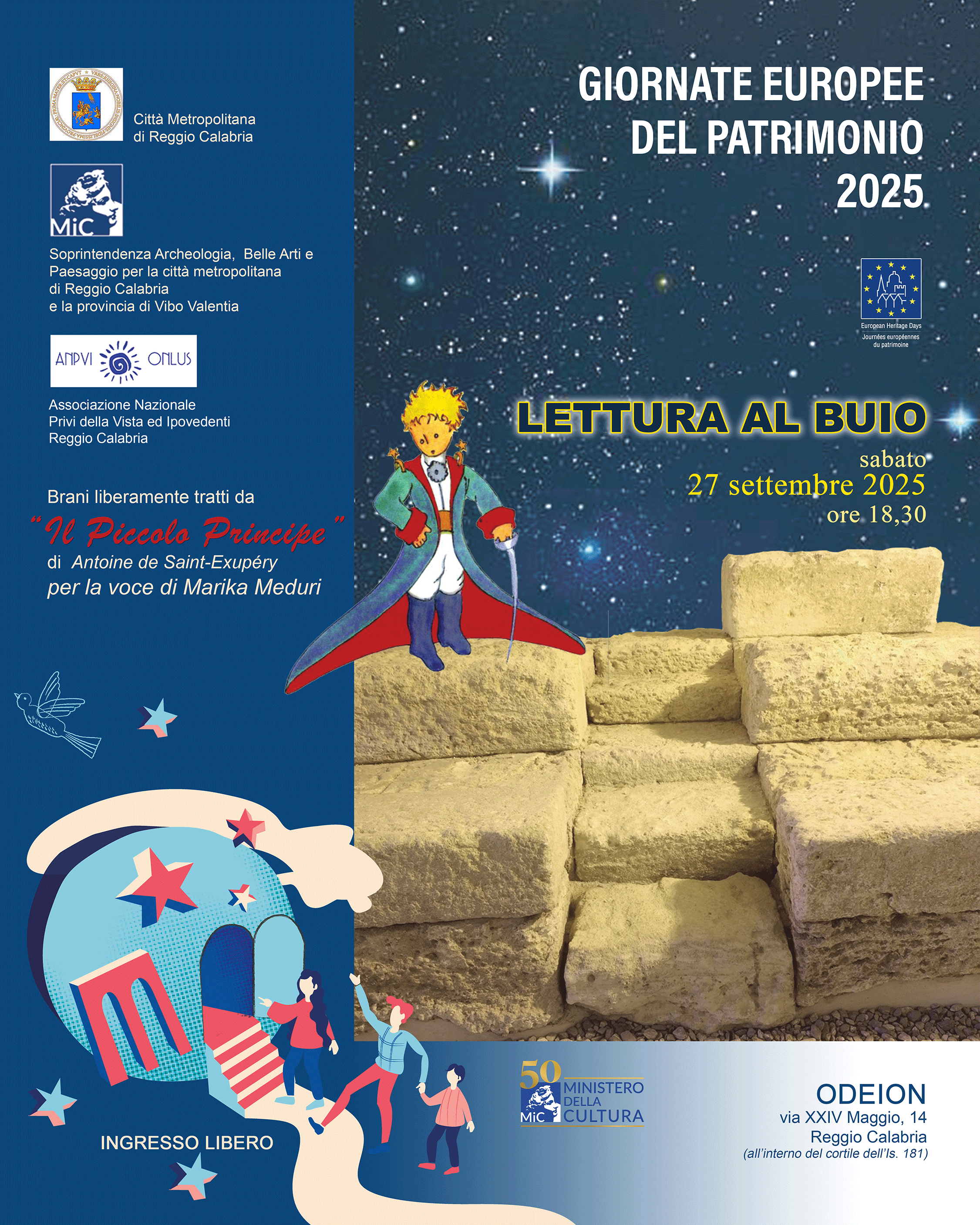La Soprintendenza Archeologia, Belle Arti e Paesaggio per la città metropolitana di Reggio Calabria e provincia di Vibo Valentia, in collaborazione con il Comune di Reggio Calabria, contribuisce alla ricca programmazione ministeriale aprendo alla fruizione i siti archeologici reggini. Sabato 27 e domenica 28 settembre, durate le fasce orarie 9-13 e 18-21, le visite guidate a cura degli archeologi e del personale della Soprintendenza permetteranno ai visitatori di comprendere le stratigrafie archeologiche dell’ipogeo di Piazza Italia e i resti dell’antico Odéion.