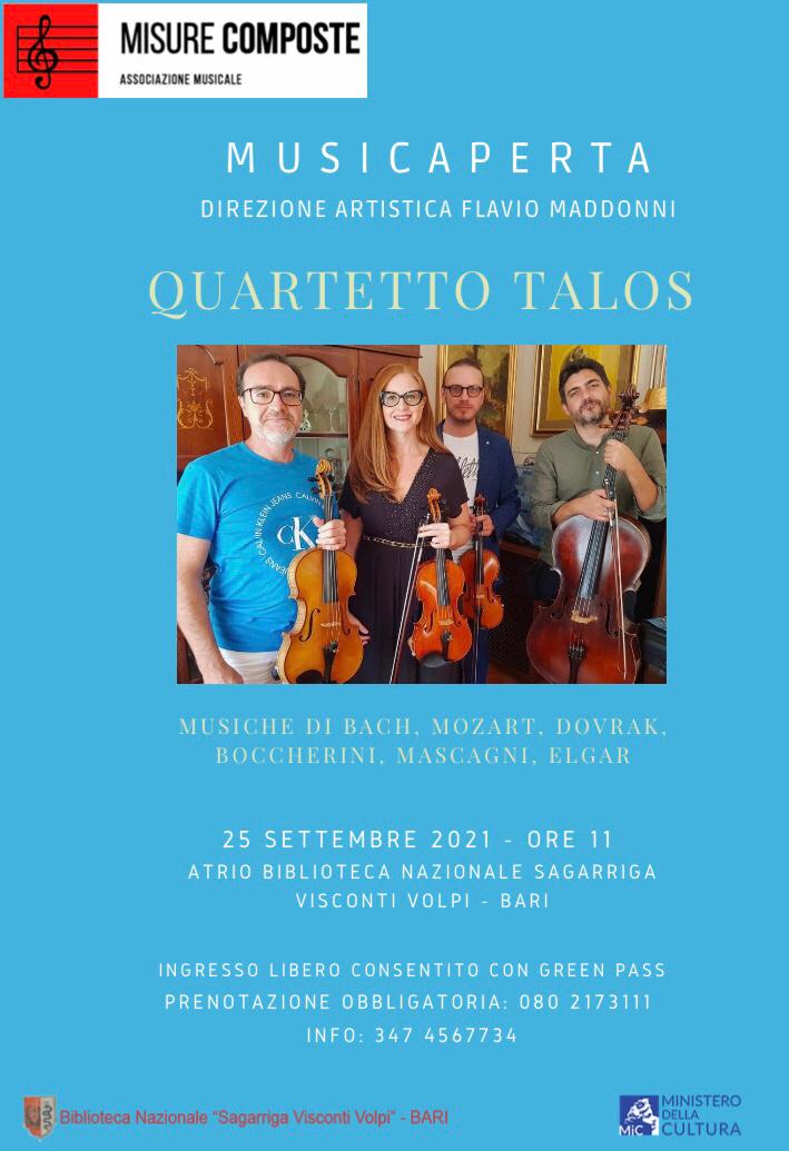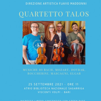 Con inizio alle ore 11.00, a cura dell’Associazione musicale Misure composte, saranno eseguite dal Quartetto d’archi Talos musiche di Bach, Pachelbel, Boccherini, Mozart, Dvorak, Mascagni e Elgar ispirate al tema della natura.