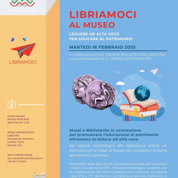 Il Museo archeologico lametino propone Libriamoci al Museo, una giornata di letture al Museo, nell’ambito delle iniziative previste per la Settimana Nazionale Nati Per Leggere.