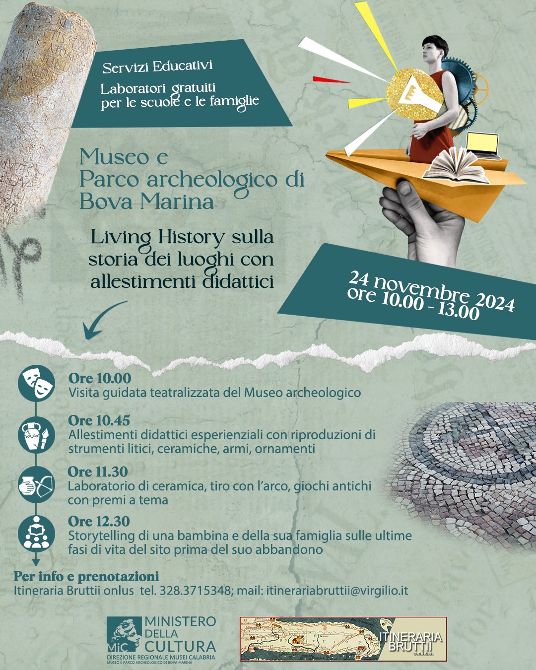 Basta partecipare al laboratorio in programma alla fine di novembre per scoprire la storia del Museo e delParco archeologicodi Bova Marina dalla voce dei protagonisti.