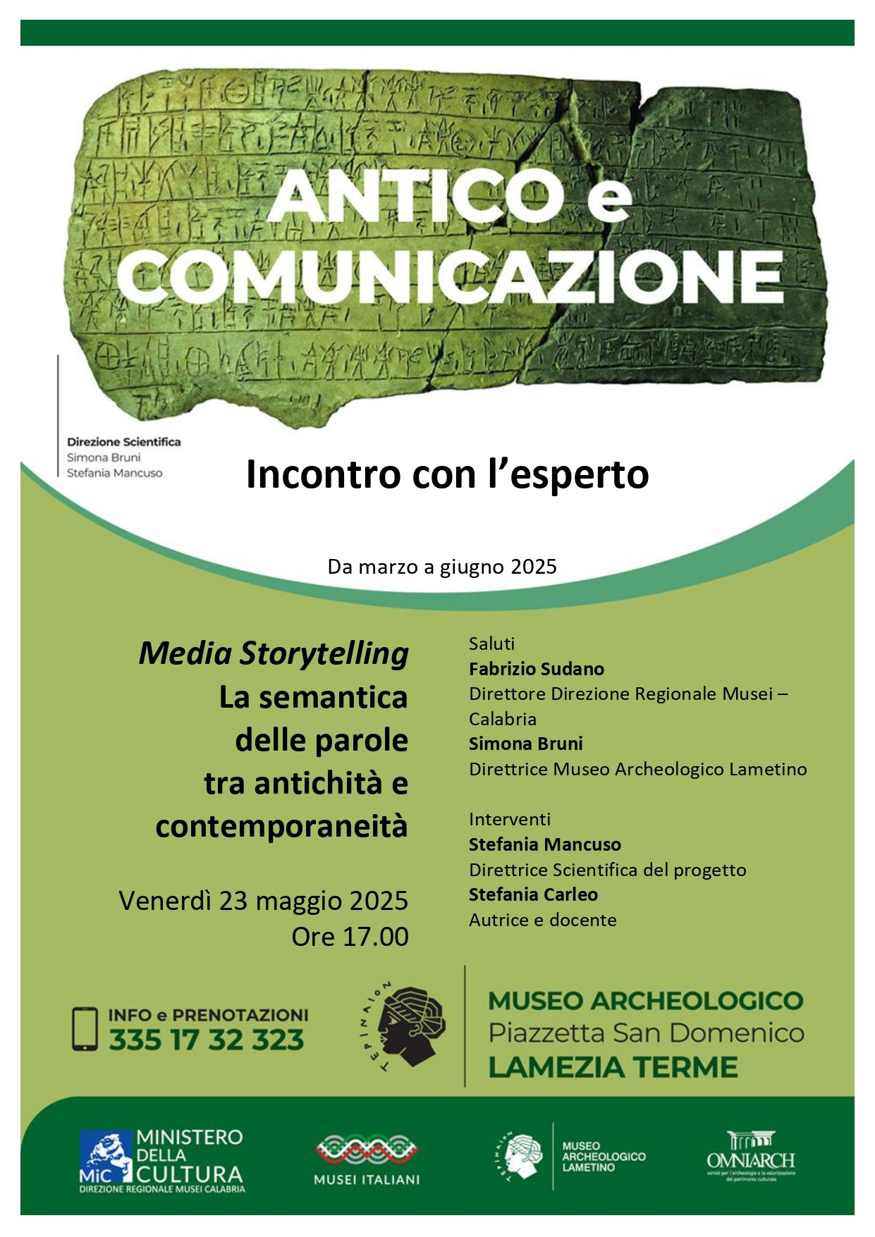 Promosso dal Museo archeologico lametino, afferente alla Direzione Regionale Musei Nazionali Calabria e la società Omniarch di Lamezia Terme, attiva nei servizi per la valorizzazione dell’archeologia e del patrimonio culturale, l'incontro si svolge nel solco della fruttuosa collaborazione avviata fra gli enti.