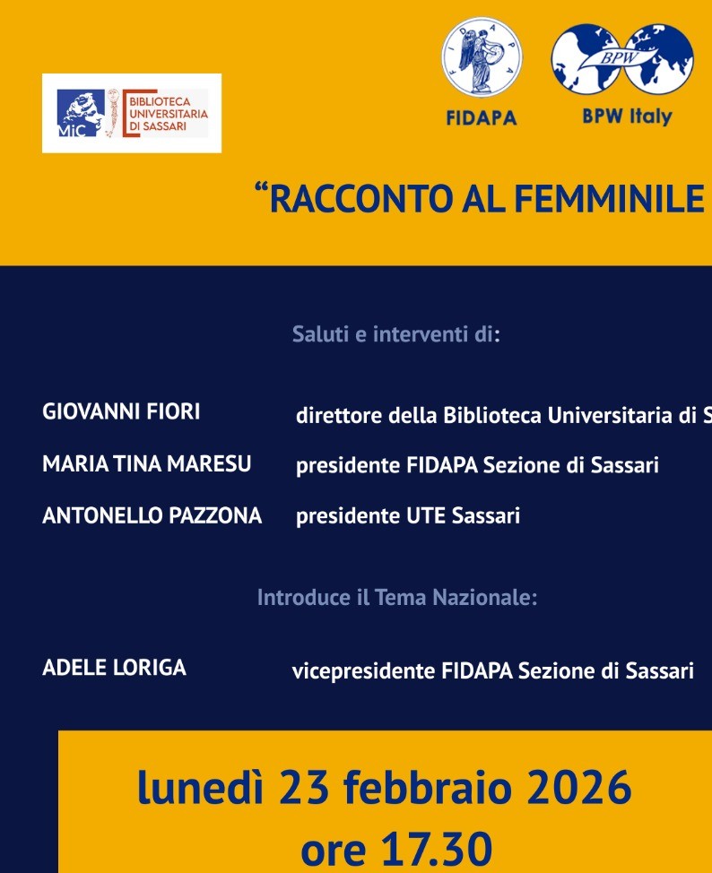 Evento organizzato in collaborazione con la Federazione Italiana Donne Arti Professioni Affari (FIDAPA) e l'Università delle tre Età di Sassari (UTE)