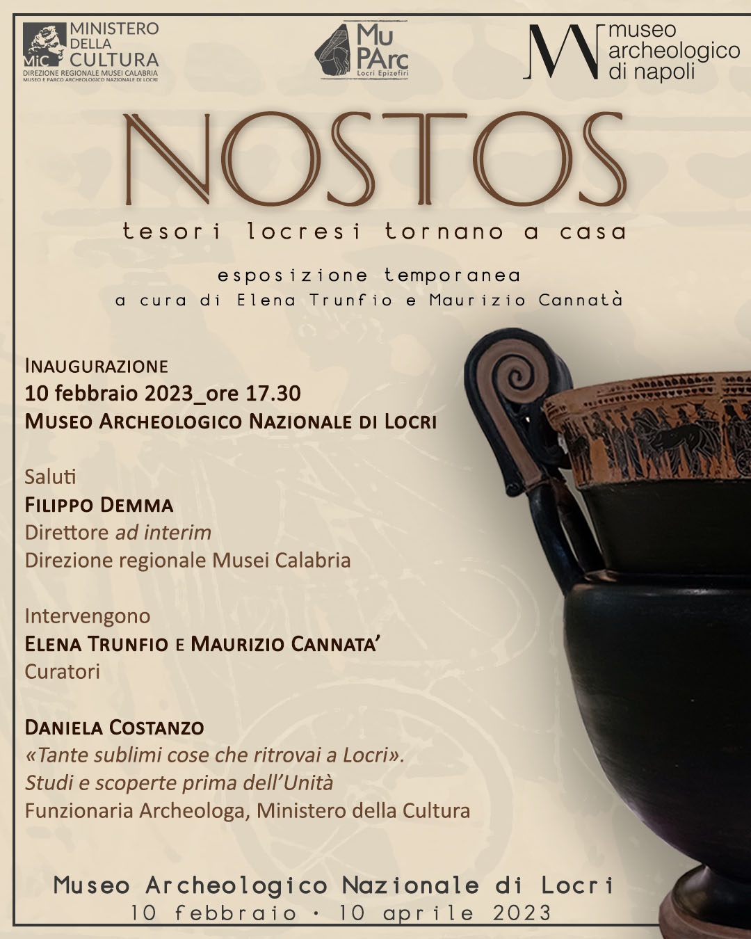 La mostra “Nostos. Tesori locresi tornano a casa” riaccende la memoria sull’importante stagione di ricerche che ha caratterizzato l’Italia preunitaria, con la formazione del Real Museo Borbonico di Napoli, nel quale confluivano le principali scoperte archeologiche di tutto il Meridione. Grazie alla sinergia attuata tra la Direzione regionale Musei Calabria e il Museo archeologico di Napoli, erede del museo borbonico, nell’ambito della mostra “Bizantini. Luoghi, simboli e comunità di un impero millenario”, due ‘tesorilocresi’ appartenenti alla collezione “Magna Grecia” del museo partenopeo ritornano oggi, simbolicamente, ‘a casa’, nello stesso luogo in cui furono rinvenuti alcuni secoli fa, a testimonianza dell’importante contributo fornito dall’antica Locri Epizefiri alla conoscenza della storia della Magna Grecia.