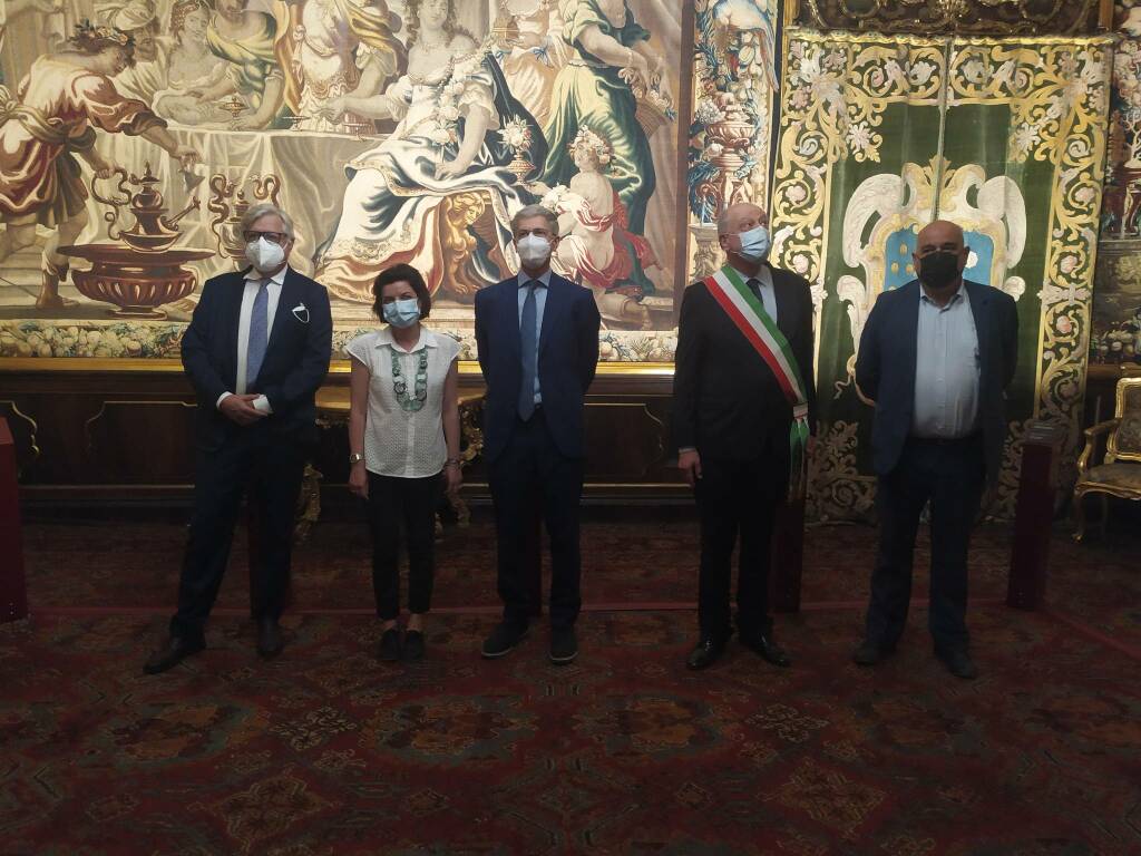 Stefano Casciu, Direttore regionale musei della Toscana, ha inaugurato la nuova illuminazione degli arazzi seicenteschi degli appartamenti monumentali del Museo nazionale di Palazzo Mansi, realizzata dalla ditta ZR Light con ERCO Illuminazione Srl, grazie al contribuito della Fondazione Cassa di Risparmio di Lucca, insieme a Marcello Bertocchini, Presidente Fondazione Cassa di Risparmio di Lucca, Giulia Coco, Curatrice Musei nazionali di Lucca, Sergio Stocchi, responsabile di area per la Toscana Erco e Maurizio Morelli. I diciotto preziosi arazzi fiamminghi raffiguranti Storie di Aureliano e Zenobia decorano le quattro Sale delle allegorie degli Elementi che si succedono al piano nobile di Palazzo Mansi chiudendo, con la Sala dell’Alcova, il percorso degli appartamenti monumentali. Grazie alla nuova illuminazione risplende in ogni dettaglio la magnifica e coloratissima narrazione affidata a questi tessuti, opera di Geraert Peemans, della Manifattura di Bruxelles, su disegno di Justus van Egmont (1601-1674), allievo di Peter Paul Rubens.ZR Light.