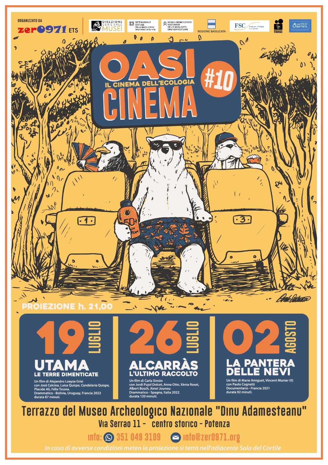 I mercoledì, dal 19 luglio al 02 agosto, presso il terrazzo del Museo Archeologico Nazionale della Basilicata "Dinu Adamesteanu" di Potenza, proiezione di film sulle tematiche ambientali.