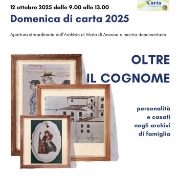 L'Archivio di Stato di Ancona aderisce all'edizione 2025 della Domenica di Carta con l'iniziativa dal titolo 𝙊𝙡𝙩𝙧𝙚 𝙞𝙡 𝙘𝙤𝙜𝙣𝙤𝙢𝙚. 𝙋𝙚𝙧𝙨𝙤𝙣𝙖𝙡𝙞𝙩𝙖̀ 𝙚 𝙘𝙖𝙨𝙖𝙩𝙞 𝙣𝙚𝙜𝙡𝙞 𝙖𝙧𝙘𝙝𝙞𝙫𝙞 𝙙𝙞 𝙛𝙖𝙢𝙞𝙜𝙡𝙞𝙖.
