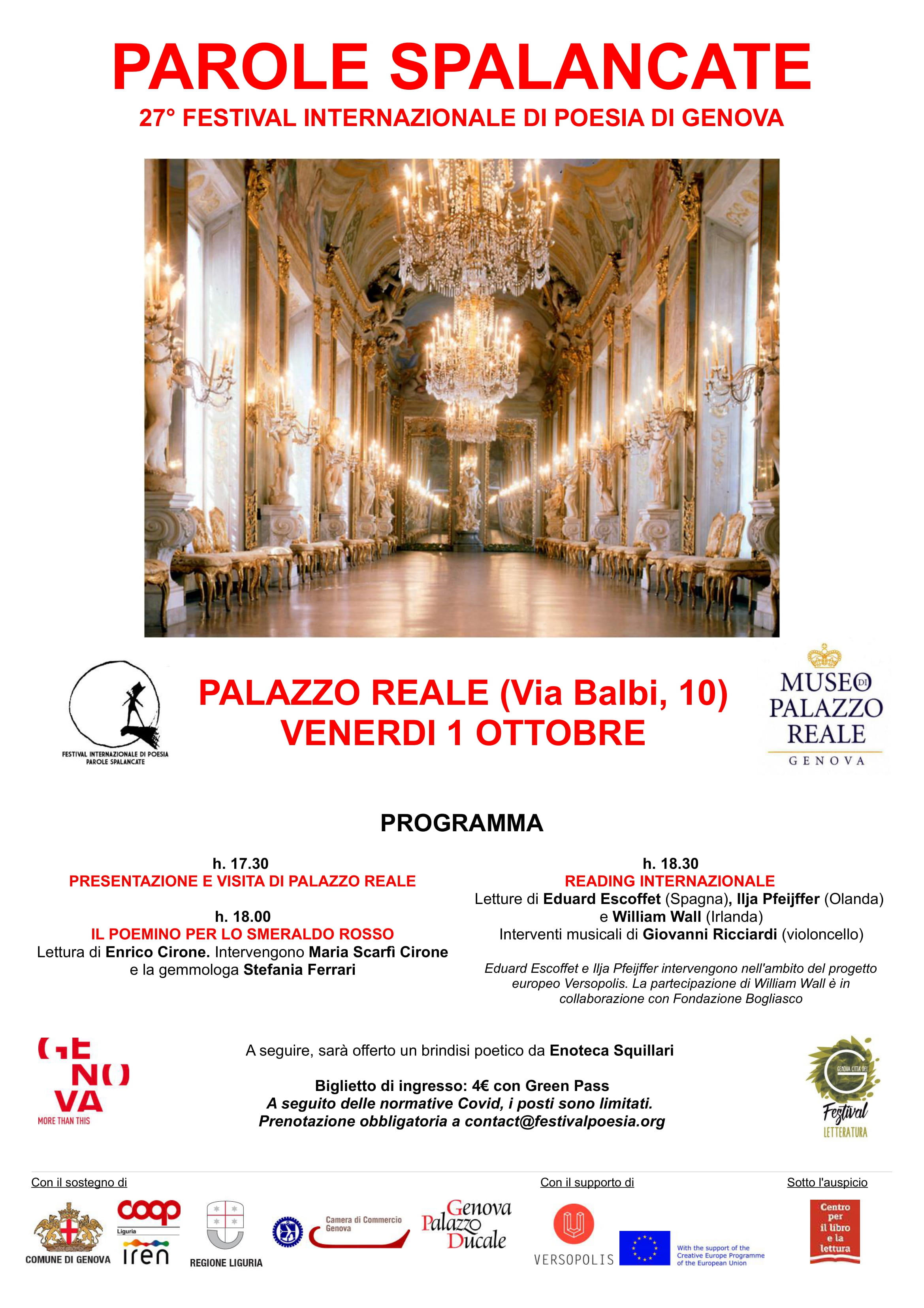 A causa del Covid i posti sono limitati ed è pertanto obbligatoria la prenotazione all’indirizzo mail contact@festivalpoesia.org