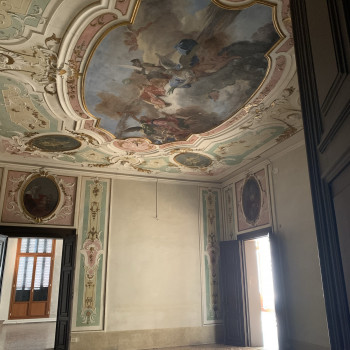Le tematiche pittoriche delle allegorie rappresentate - Allegoria della Vittoria, Trionfo del Merito e Allegoria dell’Abbondanza al primo piano nobile e, al piano superiore, Allegoria della Pace - appartengono al panorama delle figurazioni allegoriche della pittura veneziana fra Sei e Settecento, con particolare riferimento alle coeve opere del Tiepolo.