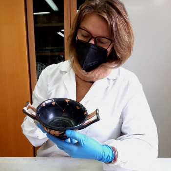 greco, una coppa per bere in ceramica attica a figure rosse.
