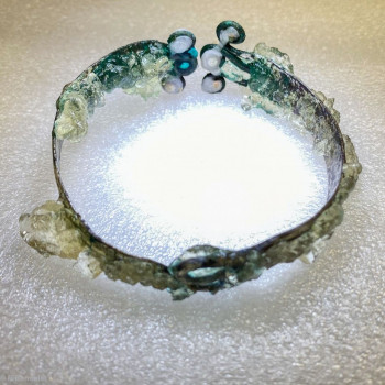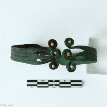 in bronzo con capi a tripla voluta e pietre dure”. Così recita la didascalia.