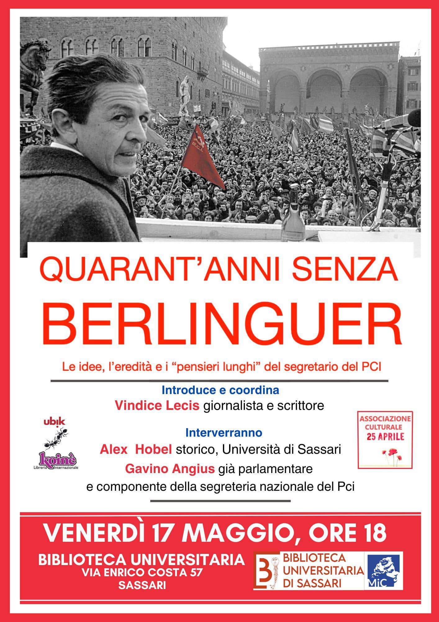 In occasione del quarantennale della morte di Enrico Berlinguer, la Biblioteca Universitaria di Sassari è lieta di ospitare il convegno: