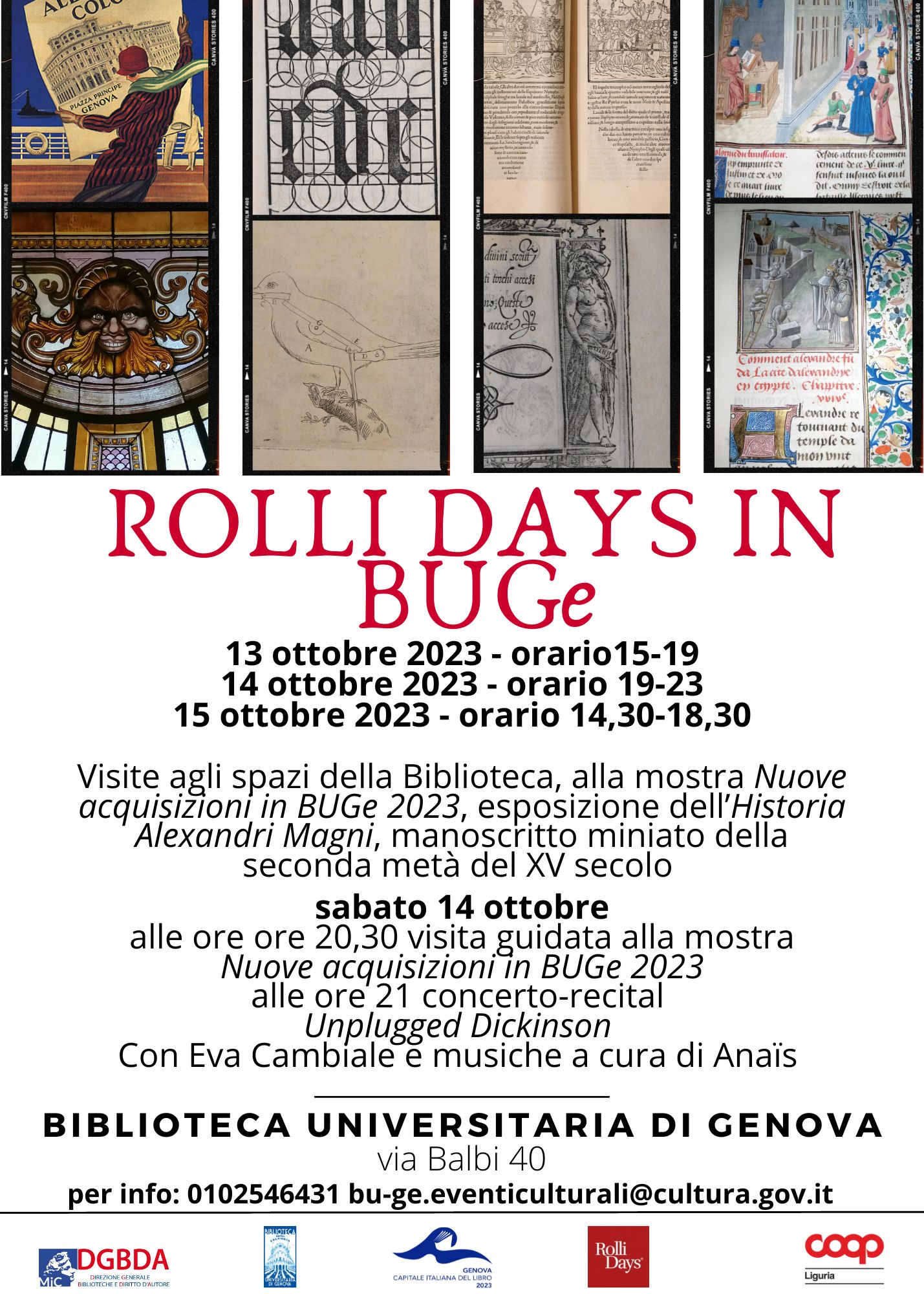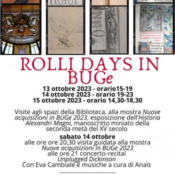 - alle ore 20.30 visitare la mostra "Nuove acquisizioni in BUGe 2023";