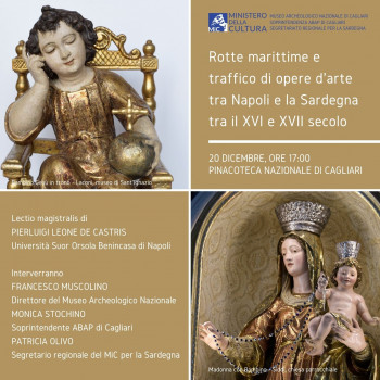Lunedì 20 dicembre alle ore 17:00 il Museo Archeologico Nazionale di Cagliari ospiterà nella sala conferenze della Pinacoteca Nazionale “Rotte marittime e traffico di opere d'arte fra Napoli e la Sardegna tra XVI e XVII secolo” di Pierluigi Leone de Castris, professore di Storia dell’arte moderna all’Università Suor Orsola Benincasa di Napoli.