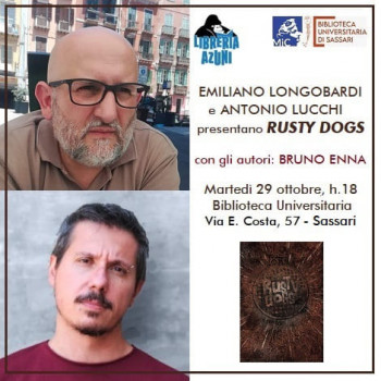 Emiliano Longobardi insieme ad Antonio Lucchi, fumettista e autore di uno dei tanti episodi, presenta il volume “Rusty Dogs”. Dopo i saluti del direttore Giovanni Fiori a moderare l'incontro sarà Bruno Enna, uno dei migliori sceneggiatori italiani di fumetti, che collabora con varie case editrici, come la Sergio Bonelli e la Walt Disney Company Italia. Tra i suoi ultimi lavori per la Disney, ricordiamo l’edizione di agosto 2024 del settimanale Topolino numero 3585, Enna ha scritto un avventura ambientata in Sardegna ispirata sui misteriosi Giganti di Mont’e Prama.