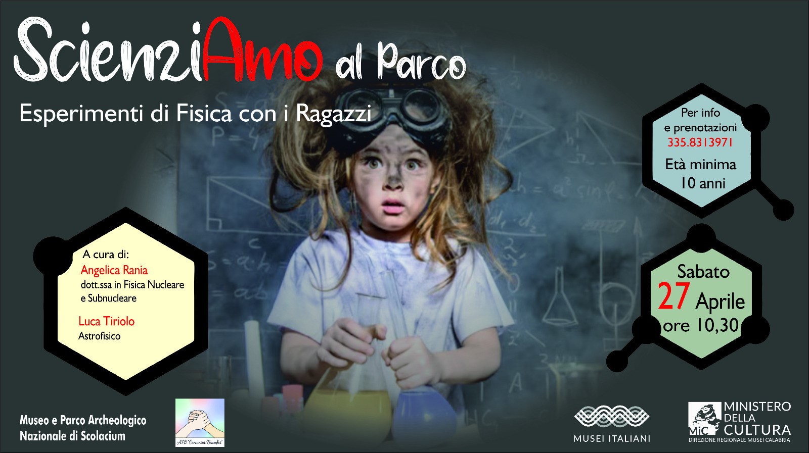 Un weekend ricco di appuntamenti a Scolacium. Alle 10:30 "SCIENZIAMO AL PARCO. Esperimenti di fisica con i ragazzi", un nuovo interessante laboratorio a cura dell’associazione “Unione Astrofili Catanzaresi” con Angelica Rania, fisico nucleare e subnucleare e Luca Tiriolo, astrofisico. I ragazzi eseguiranno alcuni esperimenti di fisica per comprendere alcune delle leggi principali che regolano la materia.
