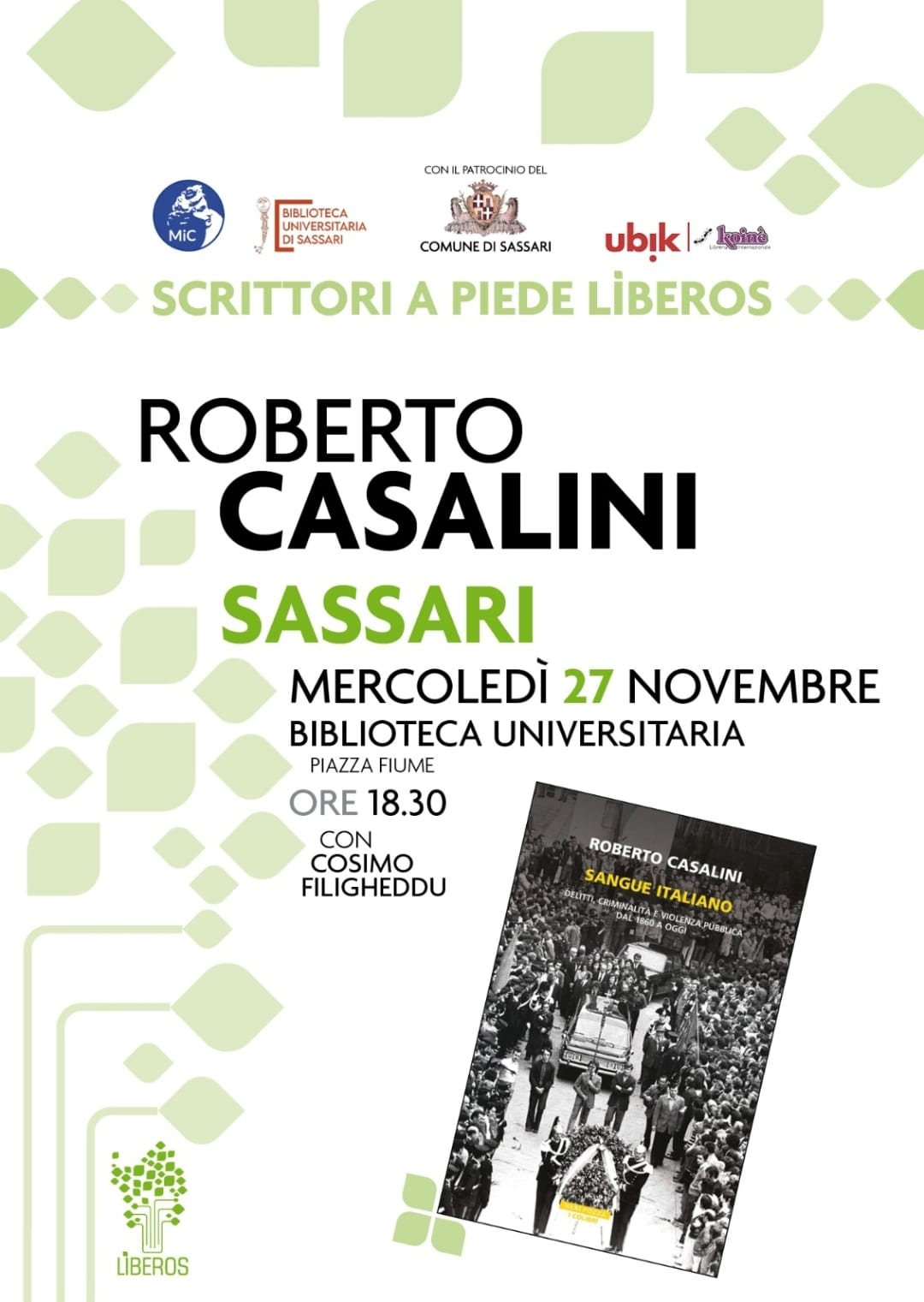 Roberto Casalini insieme a Liberos, l'associazione culturale che promuove la lettura, per "Scrittori a piede liberos" è ospite della nostra Biblioteca per la presentazione del suo ultimo libro "Sangue italiano. Delitti, criminalità e violenza pubblica dal 1860 a oggi", pubblicato dalla casa editrice Neri Pozza.