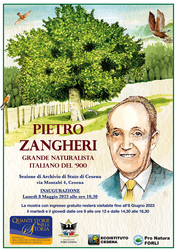 La mostra, grazie a una serie di tavole illustrate con disegni originali, intende ricordare la figura del grande naturalista forlivese Pietro Zangheri, che dedica alla Romagna oltre 60 anni di ricerca naturalistica e più di duecento pubblicazioni, anche al fine di promuoverne il messaggio culturale, che invita tutti noi alla salvaguardia del patrimonio naturale del nostro territorio e non solo.