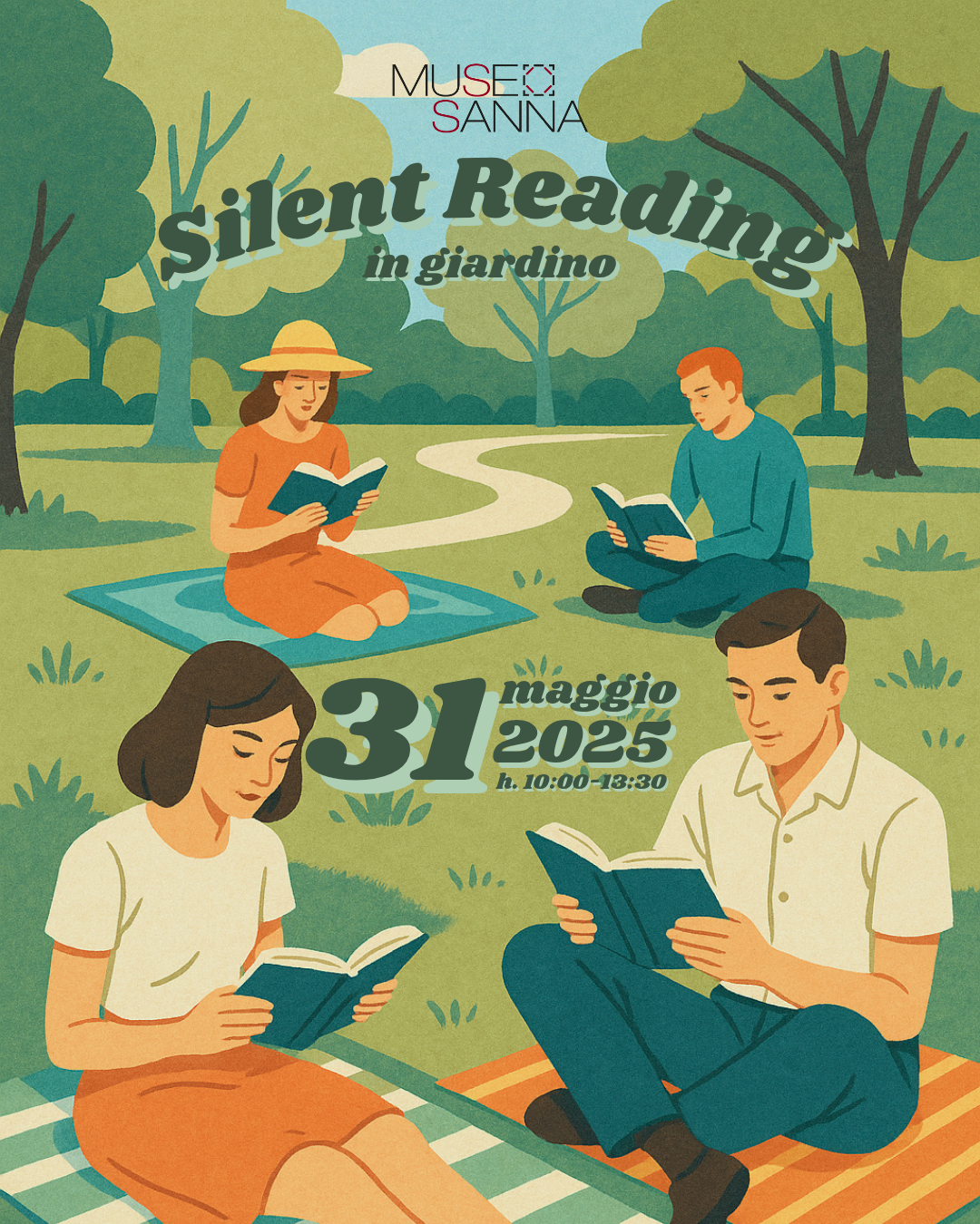 Sabato 31 maggio, dalle ore 10.00 alle ore 13:30, le persone di tutte le età sono invitate a un’esperienza di lettura silenziosa e condivisa. Non è previsto un programma di interventi. Si richiede di partecipare e godersi la lettura in un contesto diverso dal solito. Un libro tra le mani, il verde intorno e il tempo che rallenta: un momento per sé, condiviso con altri lettori. In silenzio ma insieme. Basta portare un libro e un telo o tappetino da casa, trovare un posto nel verde e unirsi alla lettura, in silenzio.