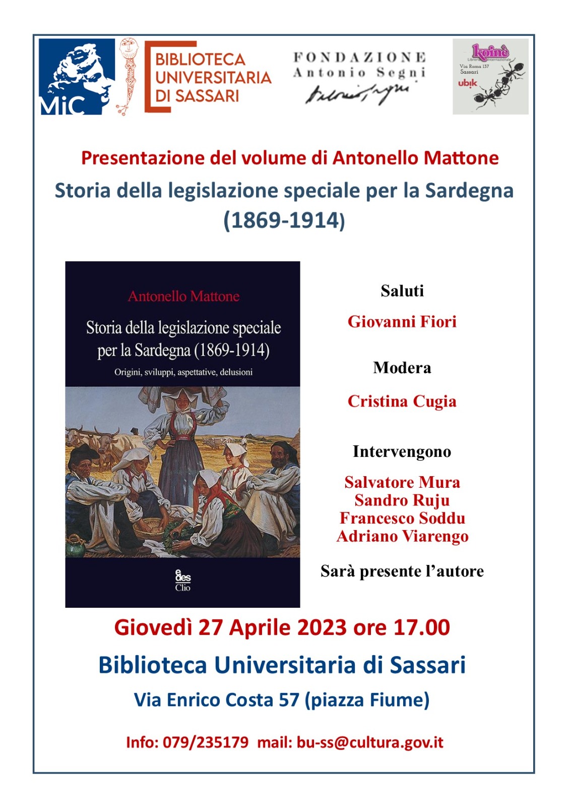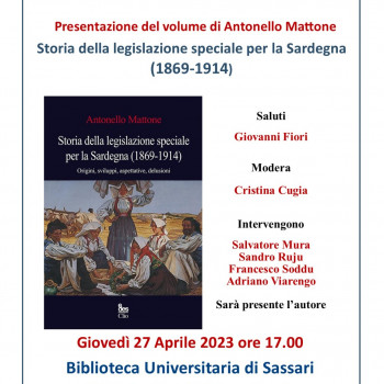 L'autore Antonello Mattone, Giovedì 27 aprile ore 17.00, presenta il volume edito dalla EDES: