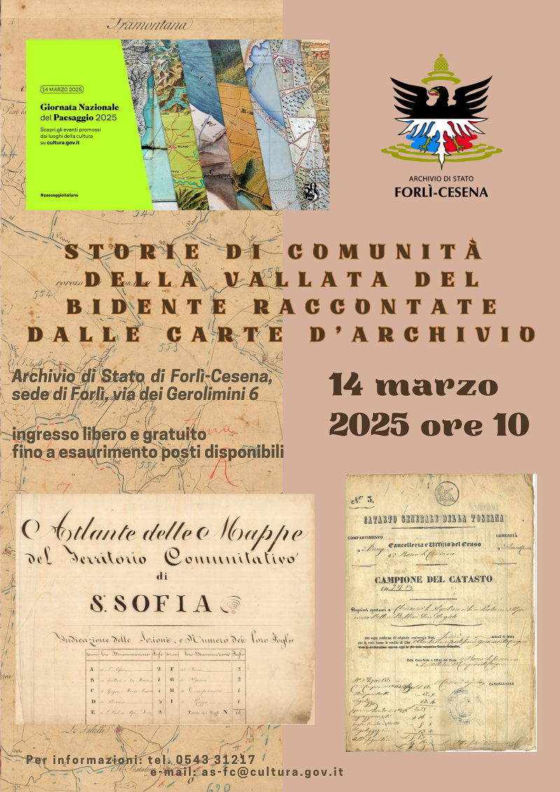 In occasione dell'edizione 2025 della Giornata Nazionale del Paesaggio, l'Archivio di Stato di Forlì-Cesena propone l'incontro Storie di comunità della vallata del Bidente raccontate dalle carte d'archivio.