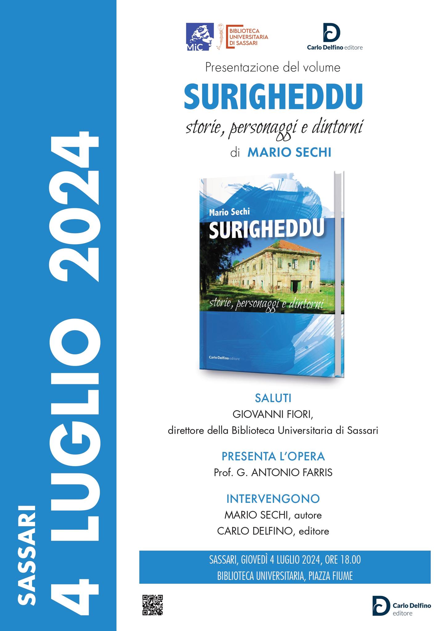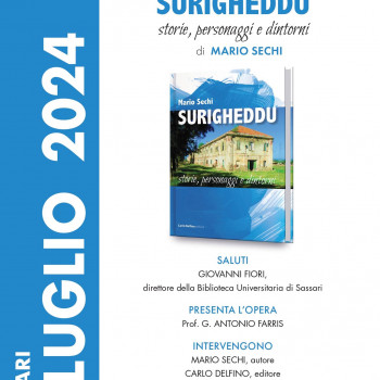 Il giorno del 4 luglio, alle ore 18.00, siamo lieti di presentare il volume "Surigheddu - Storie, personaggi e dintorni", dell'autore Mario Sechi, funzionario Laore, libro pubblicato dalla Carlo Delfino Editore.