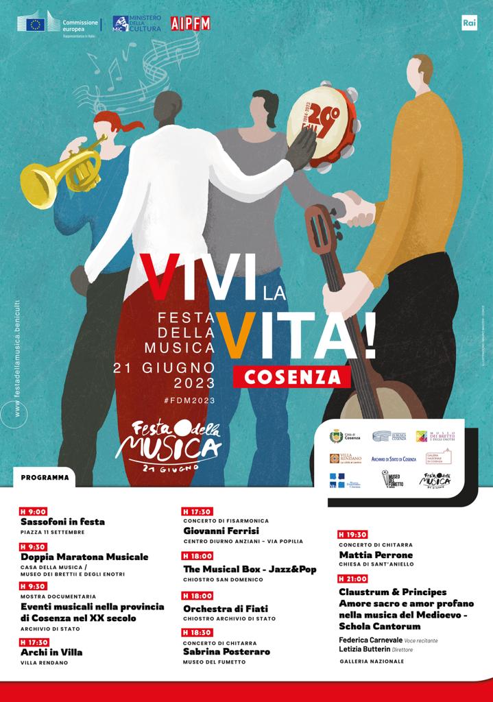 In allegato locandina con programma Festa della Musica 2023 a Cosenza