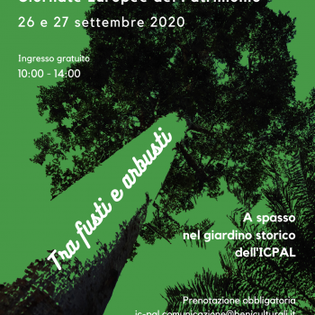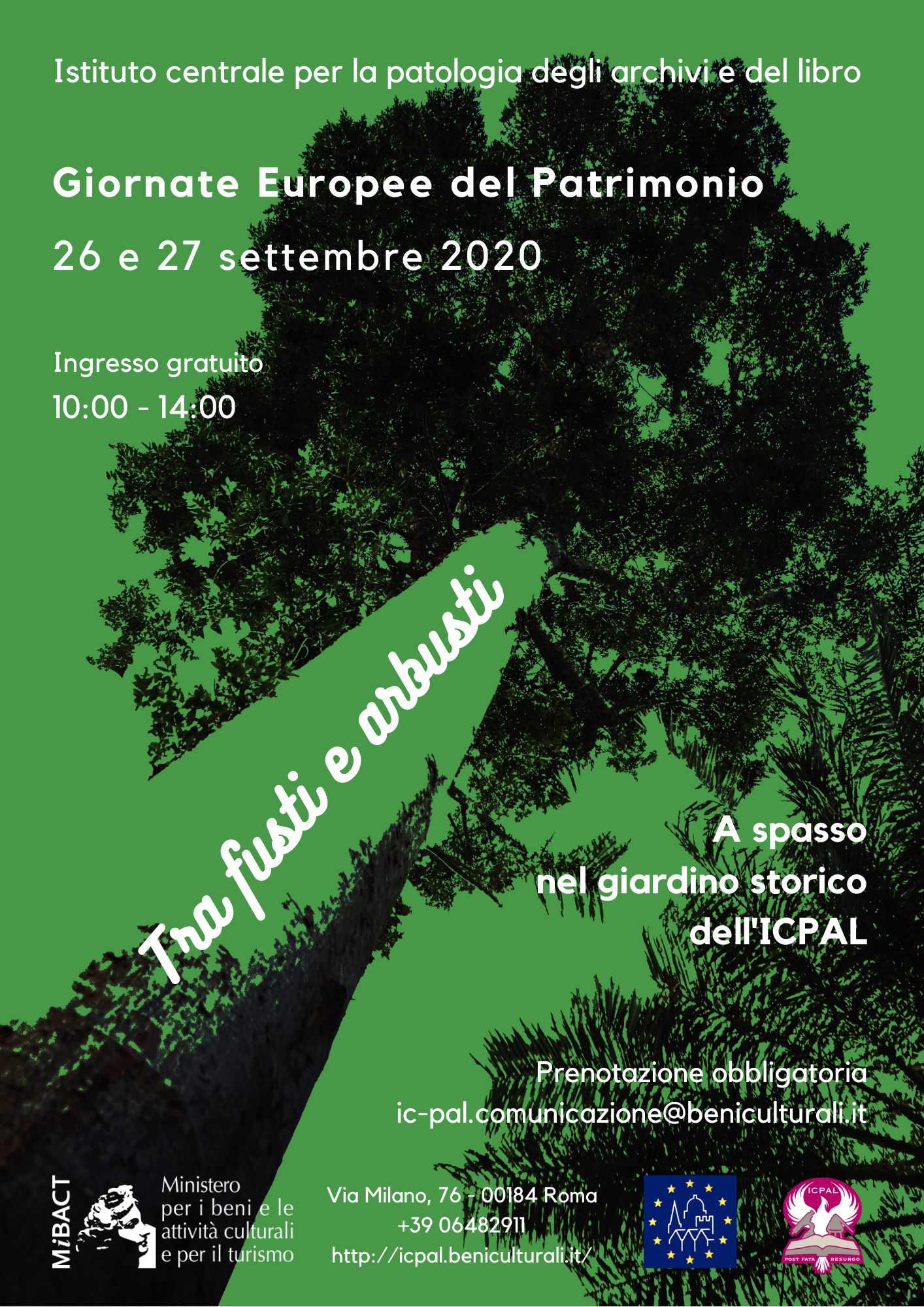 In occasione delle Giornate Europee del Patrimonio, il 26 e 27 settembre 2020 l’Istituto centrale per la patologia degli archivi e del libro promuove l’apertura straordinaria dal titolo “Tra fusti e arbusti. A spasso nel giardino storico dell’ICPAL”.