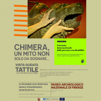 Apertura straordinaria serale dalle ore 18,00 alle 22,00 (ultimo ingresso 21,15) con possibilità di visita guidata tattile della "copia identica" della Chimera, realizzata nel 2012 dalla Fonderia Artistica Ferdinando Marinelli di Firenze, con la medesima tecnica e le stesse proporzioni del bronzo antico. La visita sarà compresa nel costo del biglietto e a cura dell'archeologo Gregorio Aversa e della restauratrice Giulia Basilissi, in collaborazione con i Servizi Educativi del Museo (primo turno ore 18,30; secondo turno ore 20,30).