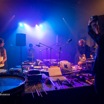 A questo seguono due pezzi di due rappresentanti della cultura della percussione come creatività esecutiva oltre che suono e ritmo. Ma se «Reflets en trio» (2002) per vibrafono, djembé e marimba dell’argentino Carlos Roqué Alsina lavora sulla convivenza timbrica degli strumenti in un’orgia di sensazioni selvagge ed etniche, «Tribadabum extensif sur rythme fantôme» (1986) di Vinko Globokar gioca tutto sull’improvvisazione degli interpreti, affiancati da musicisti selezionati tramite una “call for performer”, ognuno con un proprio compito che è quello di materializzare suoni e rumori sia attraverso le percussioni sia attraverso oggetti di uso comune, tenendo a mente un ritmo che è appunto “fantasma” perché precluso invece al pubblico.
