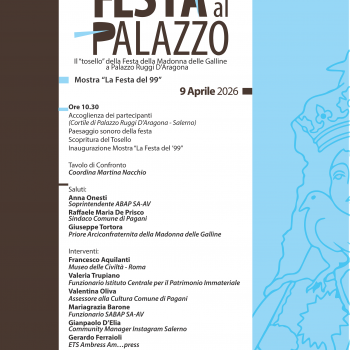 L’iniziativa si inserisce nel percorso condiviso di tutela, valorizzazione e salvaguardia avviato nel 2024 con la firma di una Convenzione sottoscritta dalla Soprintendenza, dal Museo delle Civiltà, dall’Istituto Centrale per il Patrimonio Immateriale, strutture del Ministero della Cultura, dal Dipartimento di Studi Politici e Sociali dell’Università degli Studi di Salerno, dal Comune di Pagani, dall’Arciconfraternita della Madonna delle Galline e dall’Ets Ambress Ampress, promotrice della Convenzione.