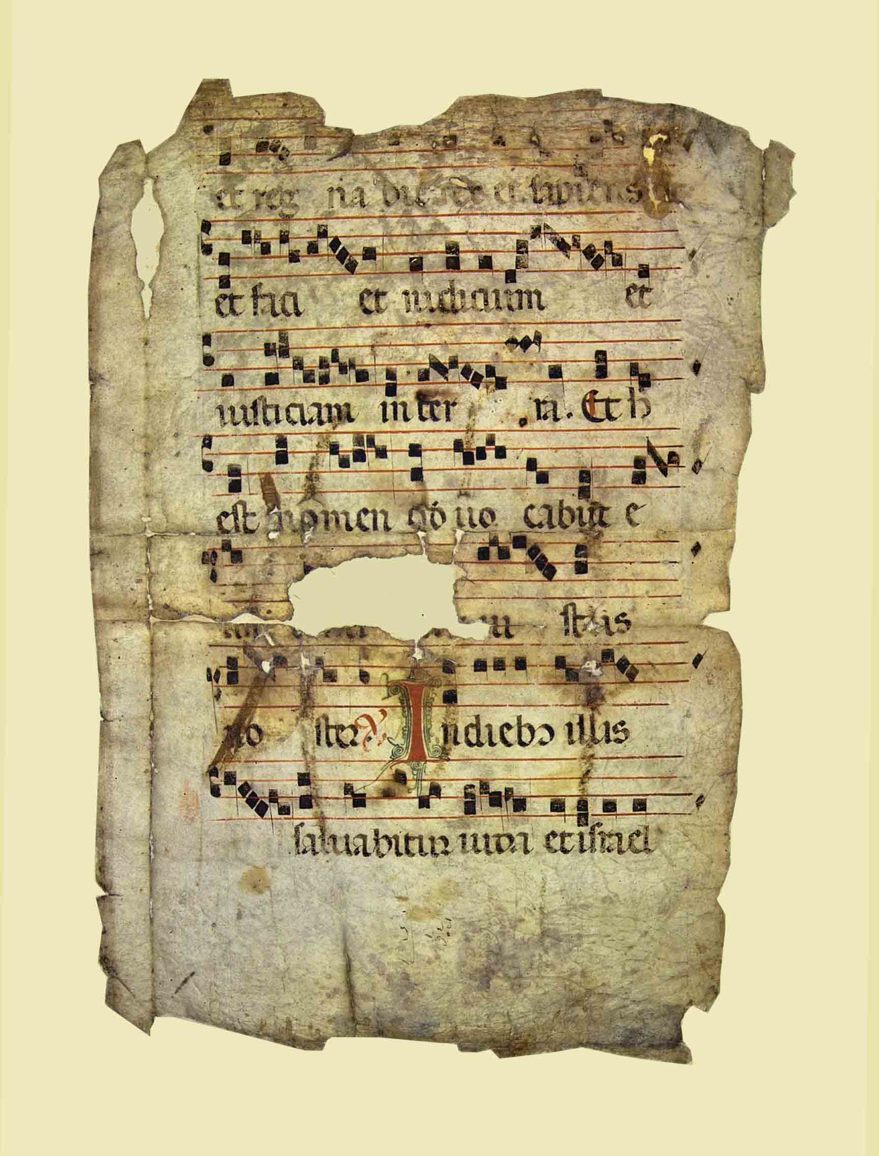 Frammento pergamenaceo del responsorio di un codice liturgico musicale usato come coperta di un protocollo notarile, XV secolo