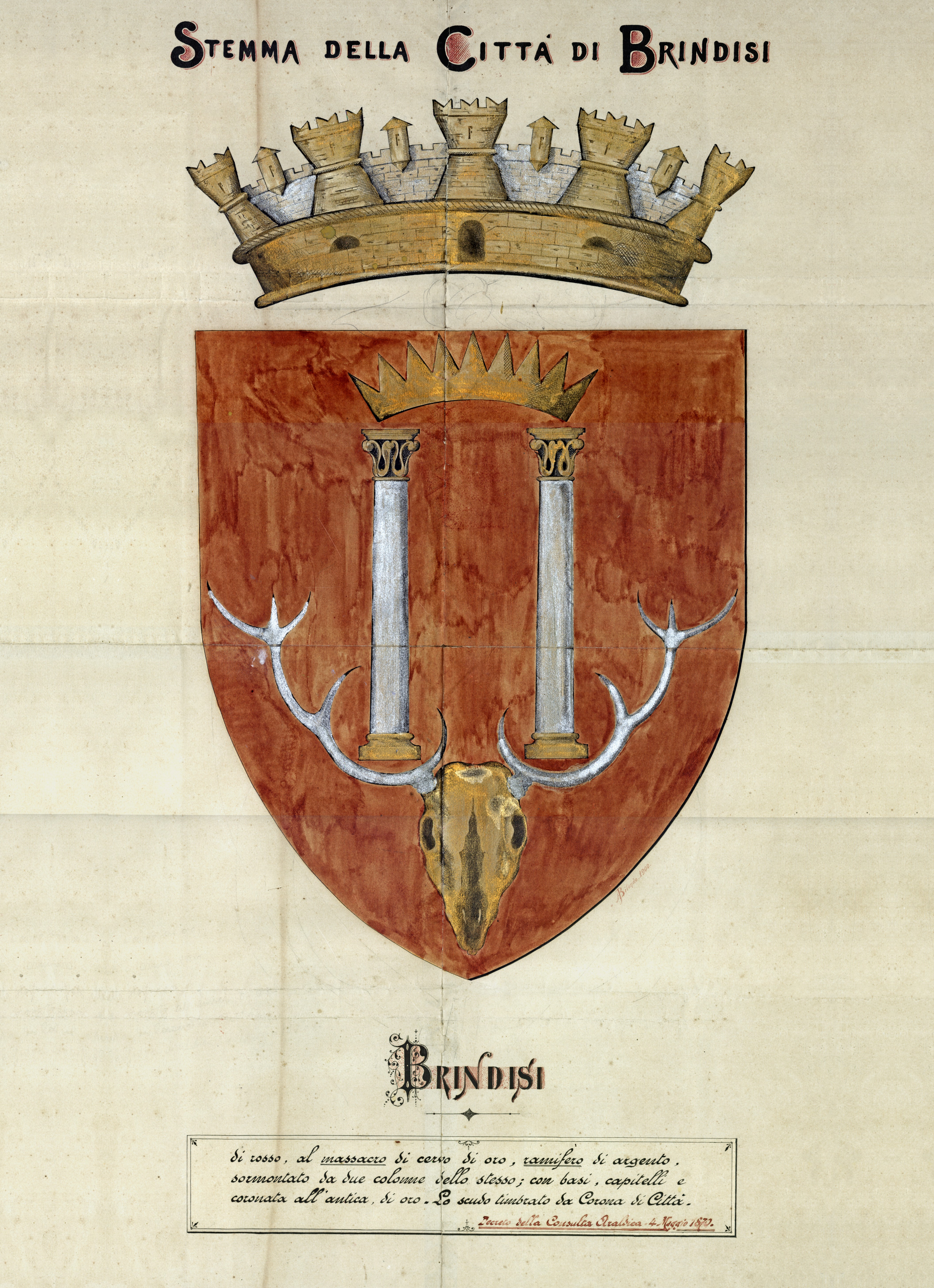 Stemma del Comune di Brindisi realizzato ad inchiostro ed acquerelli (1900 circa), fondo Archivio Storico del Comune di Brindisi