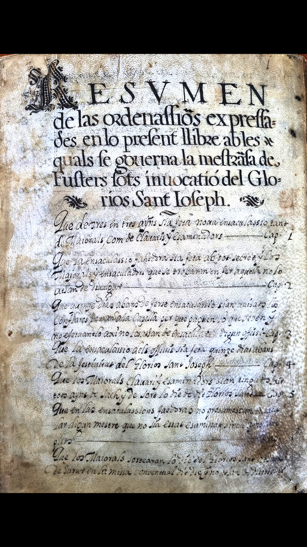 Il manoscritto è uno dei pochi statuti originali di gremi conservati nell’isola. Le sue decorazioni, che ne ornano la coperta, gli danno particolare preziosità.