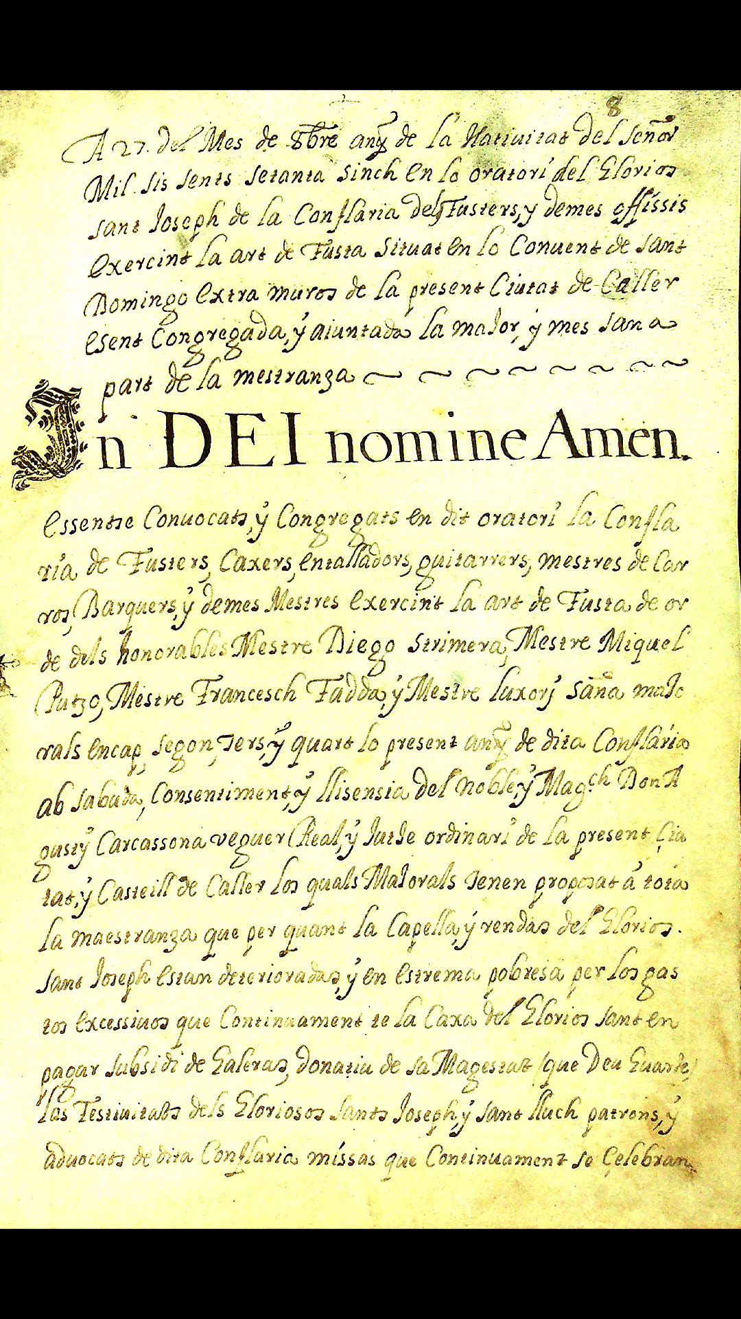 Tra i documenti di maggiore pregio conservati dall’Archivio di Stato di Cagliari si distingue per rilevanza il seicentesco Statuto del gremio dei falegnami di Cagliari.