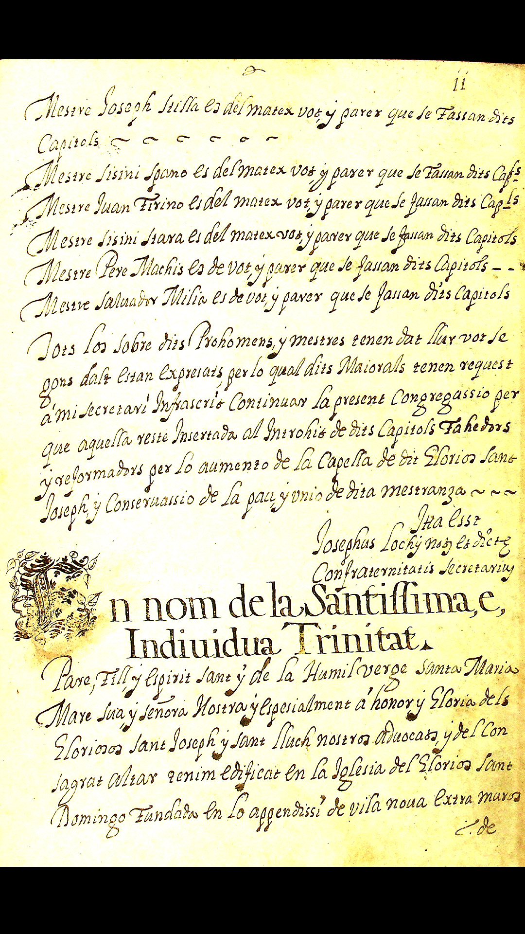 I falegnami (fusters) di Cagliari erano associati con i muratori quando questi, nel 1473, diedero uno statuto alla loro confraternita, intitolata ai SS. Quattro Coronati. In data imprecisata, tra Quattrocento e Cinquecento, i falegnami si separarono dai muratori, riunendosi in una confraternita autonoma. Per regolamentarla emanarono nel 1516 uno statuto composto da pochi capitoli, sostituito nel 1675 da quello attualmente conservato a Cagliari. Gli associati alla confraternita dei falegnami adottarono come patrono San Giuseppe ed elessero a loro sede la chiesa di San Domenico che sorge nel quartiere storico di Villanova e affaccia sull’omonima piazza.
