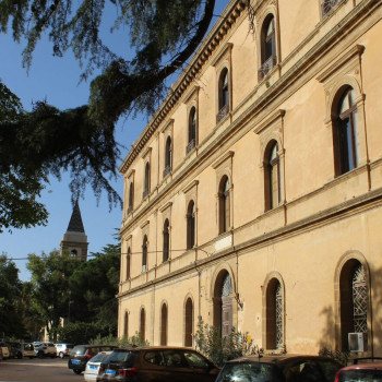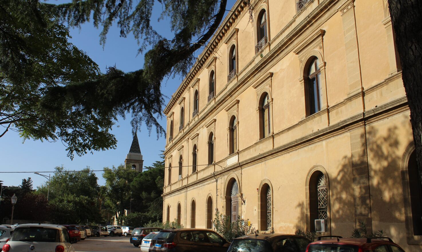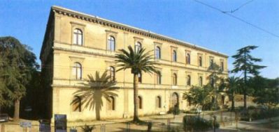 La Sezione, dal 1993, si trova nei locali dell’ala ovest del piano terreno dell’ex Educandato di San Luigi, di proprietà comunale. La costruzione dell’Educandato venne approvata nel 1849, attraverso delibera comunale con cui si autorizzava la spesa per l’Edificio per le Donzelle povere destinato ad ospitare e istruire duecento ragazze, comprese le projette abbandonate sulla strada dalle nutrici, vicino alla chiesa di Santa Maria di Gesù. Lo stabile venne inaugurato il 30 maggio 1864, su progetto dell’architetto Giovanni Di Bartolo. L’edificio è a pianta rettangolare con corte interna, su tre livelli. La facciata principale è scandita da quattro paraste conclusa da un cornicione aggettante e poggiante su mensole, al di sopra una serie di mascheroni antropomorfi fungono da pluviale per il deflusso delle acque piovane.