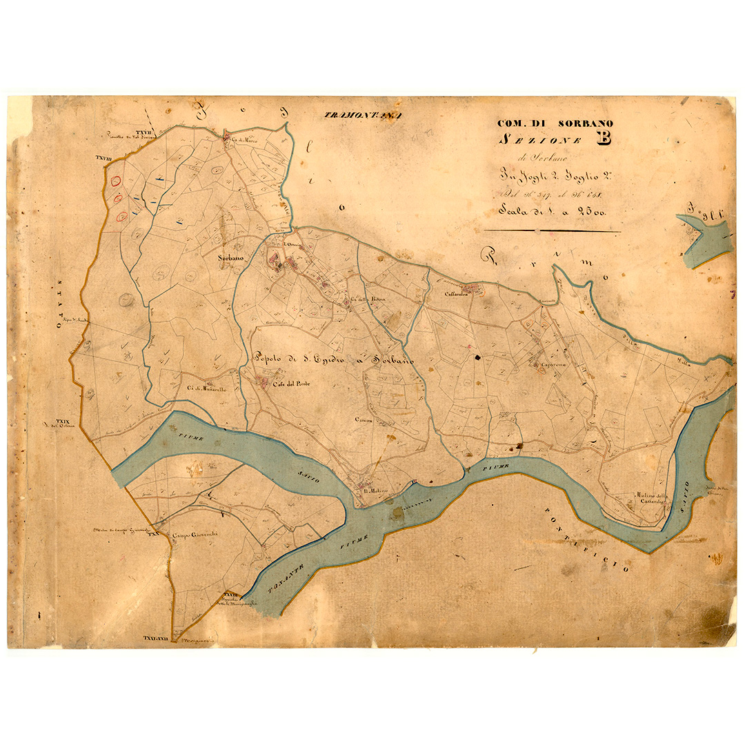 Un fondo archivistico tra i più consultati presso la sede di Forlì dell’Archivio è il Catasto della Romagna Toscana del 1834, composto da registri e mappe, dove è rappresentato l’assetto territoriale e urbano con i centri abitati, i corsi d’acqua e la viabilità.