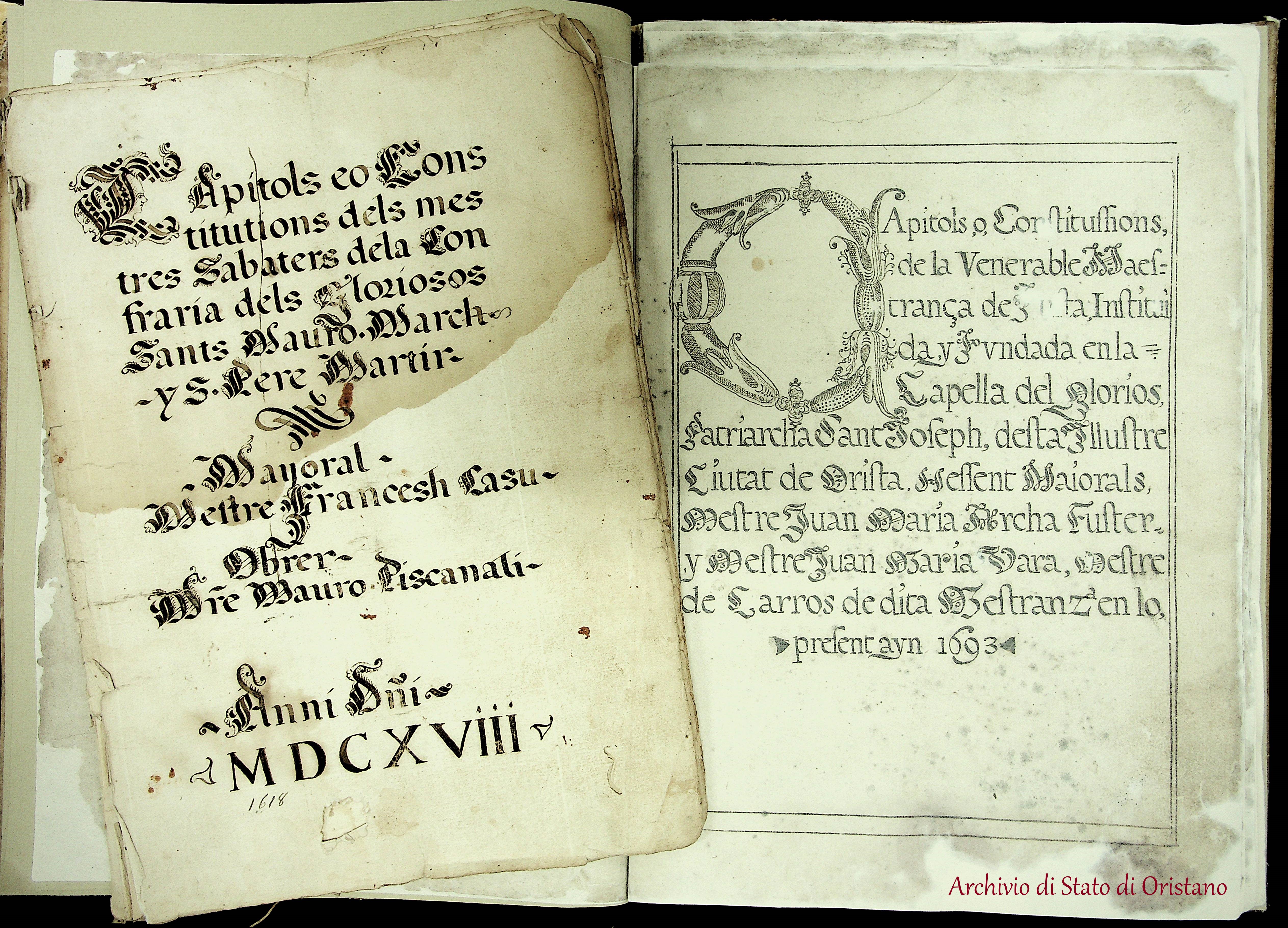 L’arco cronologico generale di riferimento è compreso tra la fine del 1800 e la seconda metà del 1900, con diverse eccezioni rappresentate da un lato dagli Statuti di diversi gremi cittadini, il più antico dei quali risale al 1618, dall’altro dalla documentazione prodotta dai notai e registrata presso le Tappe di insinuazione di Oristano, Ales e Ghilarza a partire dal 1738.