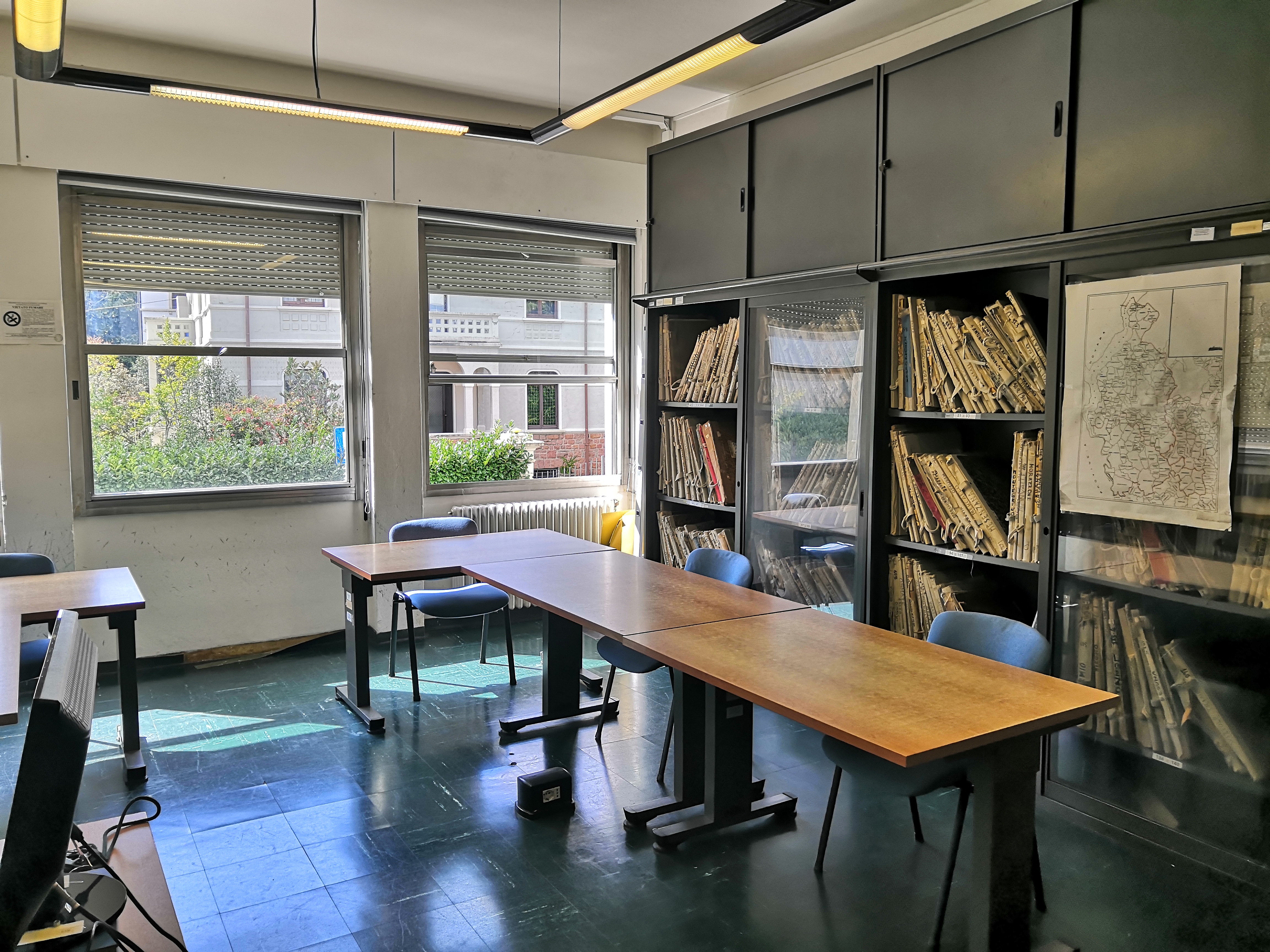 La Biblioteca viene utilizzata anche per la consultazione delle mappe appartenenti al fondo Catasto teresiano, digitalizzate per la massima parte mediante il Progetto Area virtuale. I locali di deposito sono ubicati in un piano seminterrato, in un piano rialzato e nel primo, secondo e terzo piano dell'edificio.