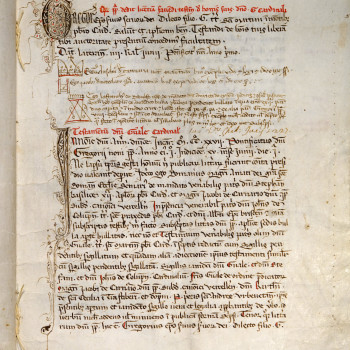 1227 maggio 29 e 31, Roma; 1227 giugno 1 Testamento del cardinale Guala Bicchieri - Copia autenticata dal notaio Lafrancus de Rodulfo - Pergamena in cartulario di 20 fogli - Sec. XIII Ospedale di Sant’Andrea di Vercelli, m. 1881, ff. 6r-8v.