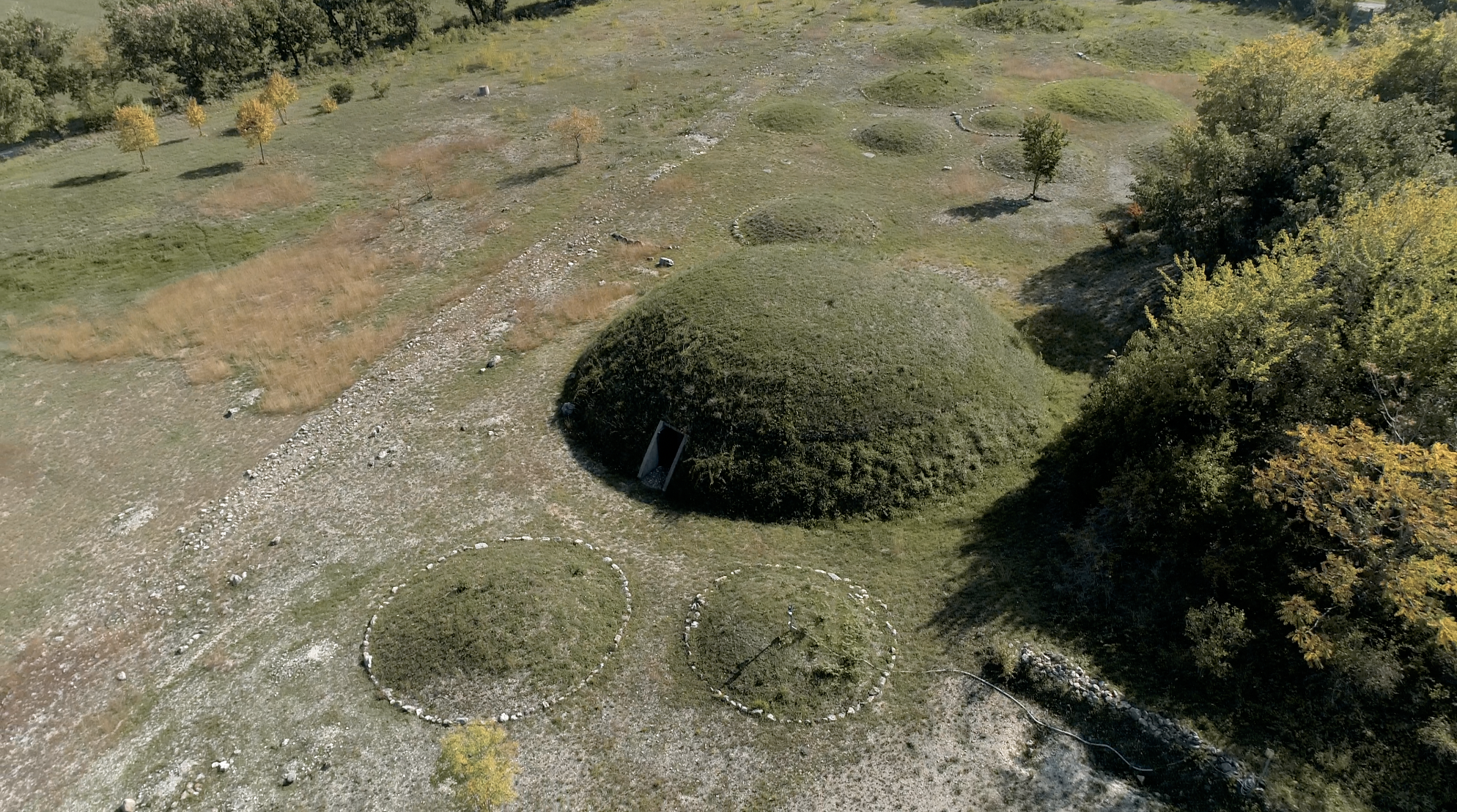 Questo tipo di tombe, per la maggior parte disposte ad ovest della strada cerimoniale, avevano un diametro variabile in base all’età e al sesso dell’inumato ed anche del ruolo che doveva rivestire all’interno della società. Vasi in ceramica e in metallo erano gli elementi ricorrenti nei corredi che si distinguevano per la presenza di armi (spade, lance, giavellotti, mazze ferrate) nel caso degli uomini e fuseruole, pesi da telaio, cinturoni e pendenti nel caso delle donne. All’interno dell’area archeologica è stata ricostruita con dimensioni reali la sepoltura più grande rinvenuta fino ad oggi, la Tomba 2, e al suo interno si può ammirare la ricostruzione di come era stata predisposta la sepoltura, con il defunto deposto su un lato della fossa, il corredo vascolare in ceramica e metallo ai piedi, ai lati le armi e sul lato il carro da parata, elemento che di sicuro sottolinea la sua posizione prominente all’interno della comunità.
