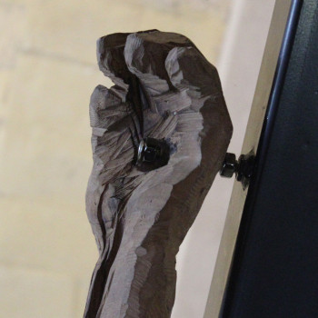 Si tratta di un’opera imponente e di forte impatto visivo, realizzata in legno di olivastro, una pianta longeva molto presente in Sardegna, dura e compatta. Sulla materia già di per sé tormentata del legno, viene sbozzata la figura di Cristo, attraverso tagli profondi, intense vibrazioni luministiche, che donano all’opera una straordinaria forza espressiva. È probabile che lo scultore abbia sentito le influenze della scultura italiana ed europea degli anni ’50. L’arte novecentesca ha trattato il tema della passione di Cristo come simbolo delle tragedie moderne, di un destino umano di sofferenza ma al contempo di speranza e redenzione.